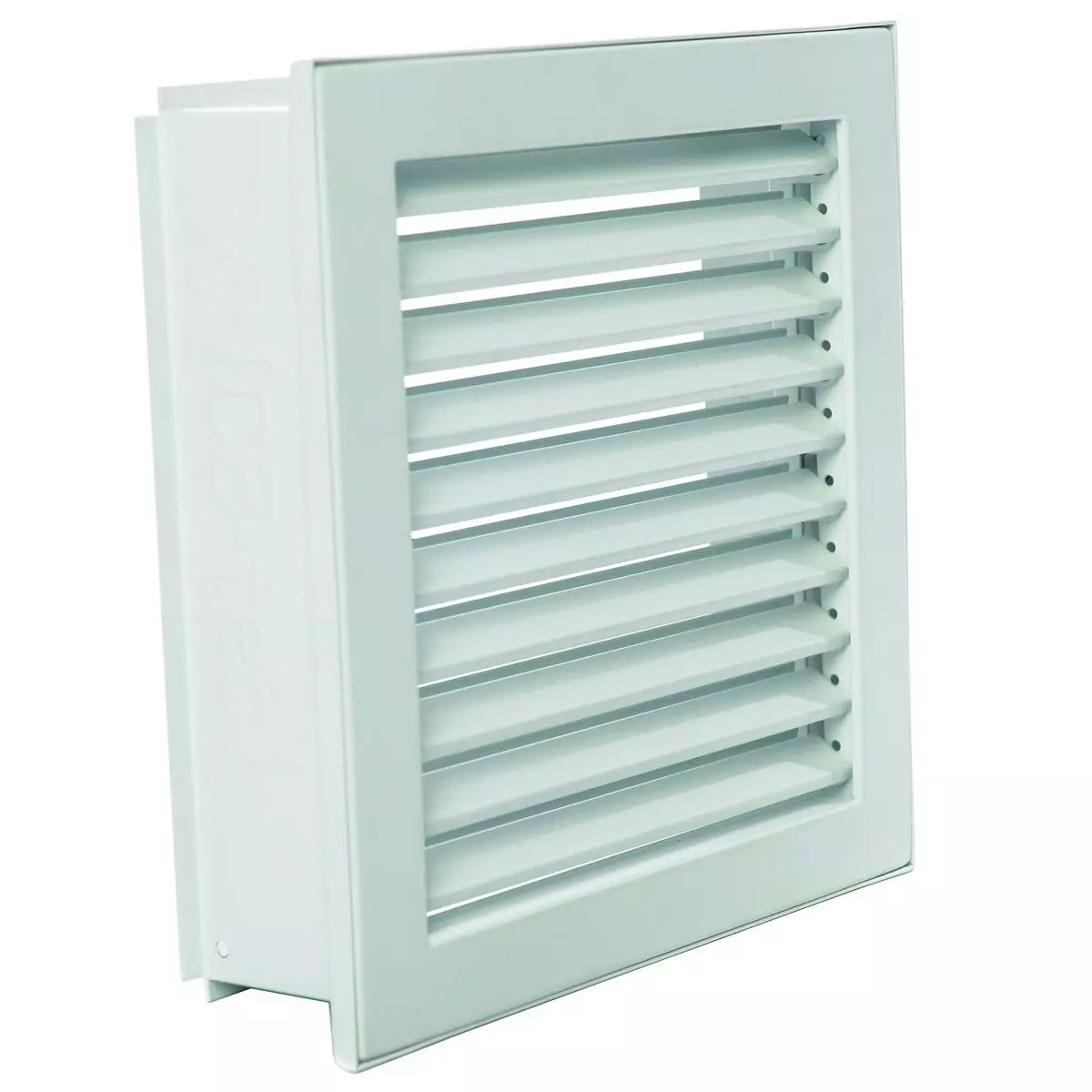 CB-tec Kaltluftgitter Kamin Ofen Luftgitter 55 x 28 cm Putzbündig weiß kgpb5528w aus Stahlblech lackiert mit feststehenden Lamellen komplett mit putzbündigem Einbaurahmen aus verzinktem Stahlblech.