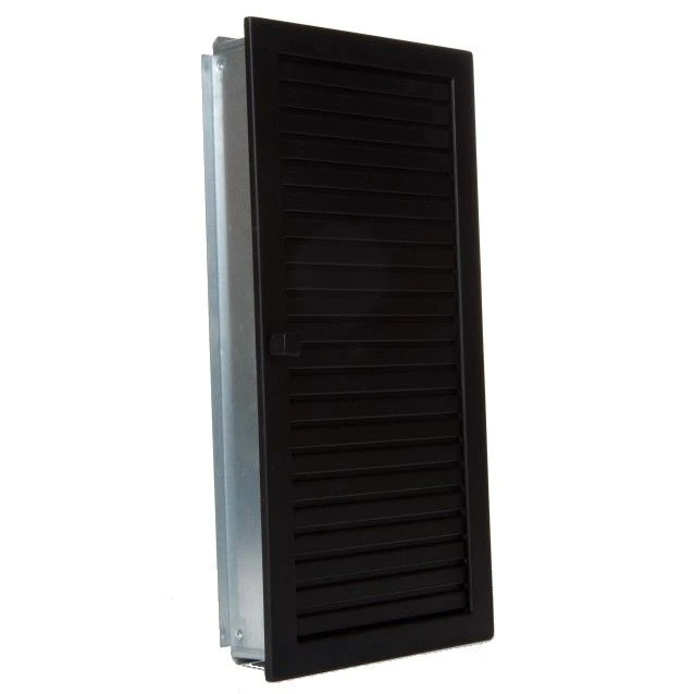 CB-tec Warmluftgitter Kamin Ofen Gitter Luftgitter hochkant verstellbar 15 x 35 cm schwarz wghk1535s zum Stecken mit Einbaurahmen aus verzinktem Stahl gefertigt und einbrennlackiert. 60 mm breiter verzinkter Einbaurahmen.