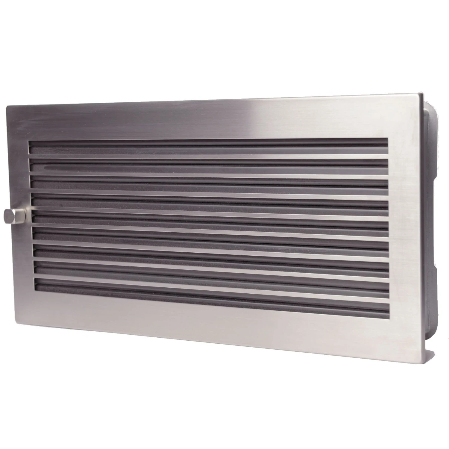 CB-tec Warmluftgitter Kamin Ofen Luftgitter 35 x 15 cm schwarz, verstellbar, Blende Edelstahl matt modern, wg3515mesm – Luftgitter aus Stahlblech lackiert mit feststehenden Lamellen komplett mit Einbaurahmen aus verzinktem Stahlblech.