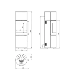 - Rauchrohrabgang: oben oder hinten wechselbar