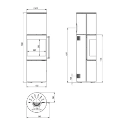 - Rauchrohrabgang: oben oder hinten wechselbar