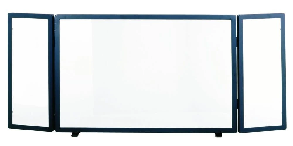 Heibi Funkenschutz mit Klarglas, Stahl pulverbeschichtet, Schwarz, temperaturbestÀndige Hartglasscheibe bis 300°C, 3-teilig, 71 x 15 cm (aufgeklappt 111 cm), Rahmenhöhe 46,5 cm, Gesamthöhe 47 cm; 12,5 kg.