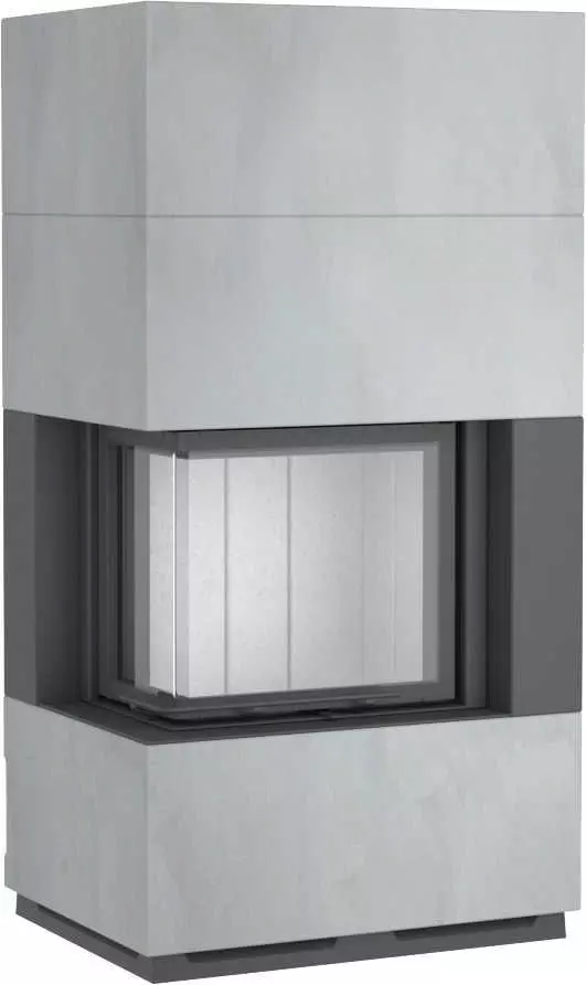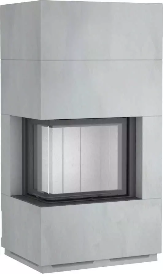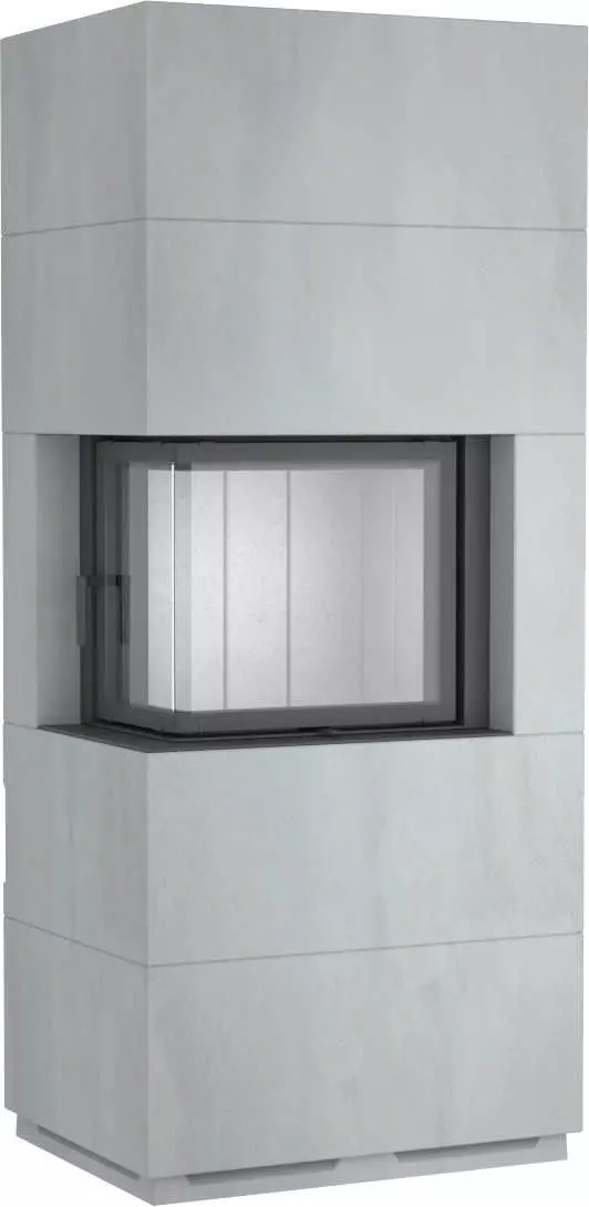 Der Kaminbausatz Speicher-Kamin Camina S17 Beton wird Inklusive Schmid Kamineinsatz Ekko L 55(34)51, Türhöhe 51 cm, schwenkbar oder Schmid Kamineinsatz Ekko R 55(34)51, Türhöhe 51 cm, schwenkbar geliefert.
