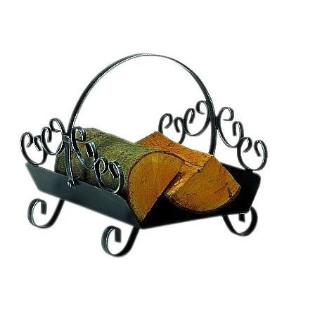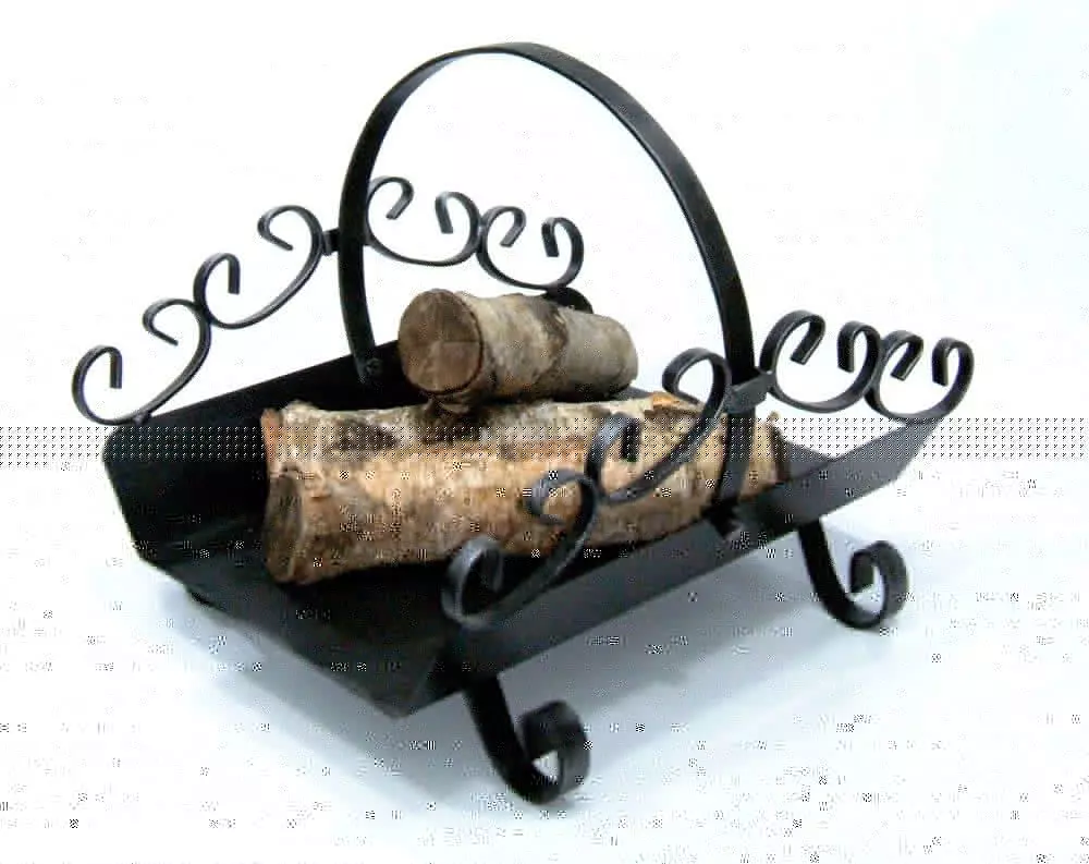 Holztrage aus Schmiedeeisen mit geschlossenem Bodenteil, geschmiedeten Ornamenten und Tragegriff.