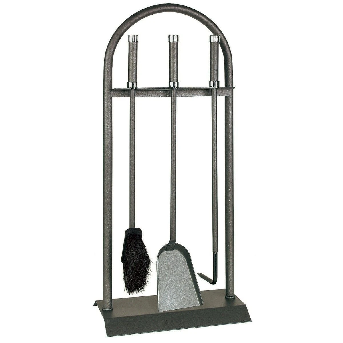 Kaminbesteck 3-teilig, anthrazit beschichtet mit Griffen mit Chromkappen.