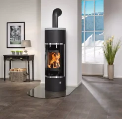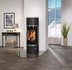 Modernes, funktionelles Design mit wirtschaftlichem Nutzen. Der Oranier Kaminofen Arena Aqua mit Wasser-Wärmetauscher ist ein moderner schlanker Ofen in runder Bauweise und hochwertiger Verarbeitung. Die große halbrunde Tür ermöglicht eine hervorragende Sicht auf das Feuer und passt sich nahezu jeder Wohnraumsituation an. Die große Griffstange ermöglicht eine einfache Bedienung des Kaminofen.