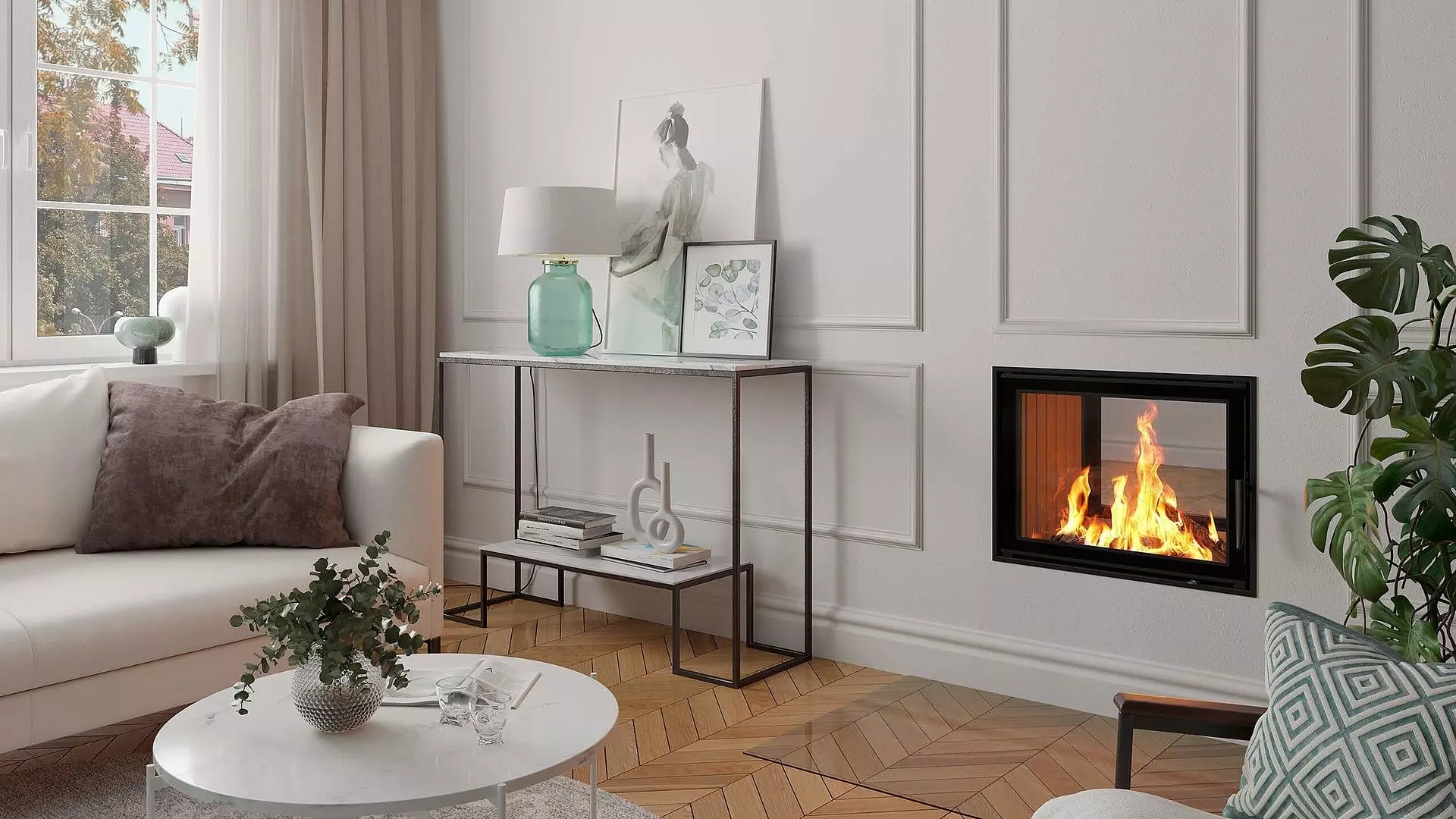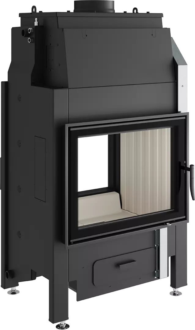 Die Spartherm Brennzelle Varia FD H2O ist ein Durchsicht-Kamineinsatz oder Tunnel-Kamin mit schwenkbaren TĂŒren, Glas 1teilig, TĂŒrrahmenbreite 675 mm (verso 677 mm), TĂŒrrahmenhöhe 512 mm (verso 511 mm). FeuerraumtĂŒr selbstschlieĂend, mit integriertem Wasser-MantelwĂ€rmetauscher inklusive thermische Ablaufsicherung, EntlĂŒftungsventil, ReinigungsbĂŒrste und Pumpenthermostat. Zur Ausstattung gehören zudem: automatische Bypassklappe, Aschelade, Turbolatoren, Doppelverglasung mit EnergyPlus Beschichtung. Verdeckter Scheibenrahmen, seitlich eingefasste 4-seitig bedruckte Glaskeramik. NW-Leistung 10 kW wasserseitig 6,4 kW, Abgaskuppel DU 200 mm. Möglichkeit: Aussenluftanschluss (RaumluftunterstĂŒtzend), Brennraumauskleidung: Schamotte, integrierte ScheibenspĂŒlung. Eine ausfĂŒhrliche Bedienungs-und Aufbauanleitung liegen dem Spartherm Kamineinsatz aria FD H2O GerĂ€t bei.