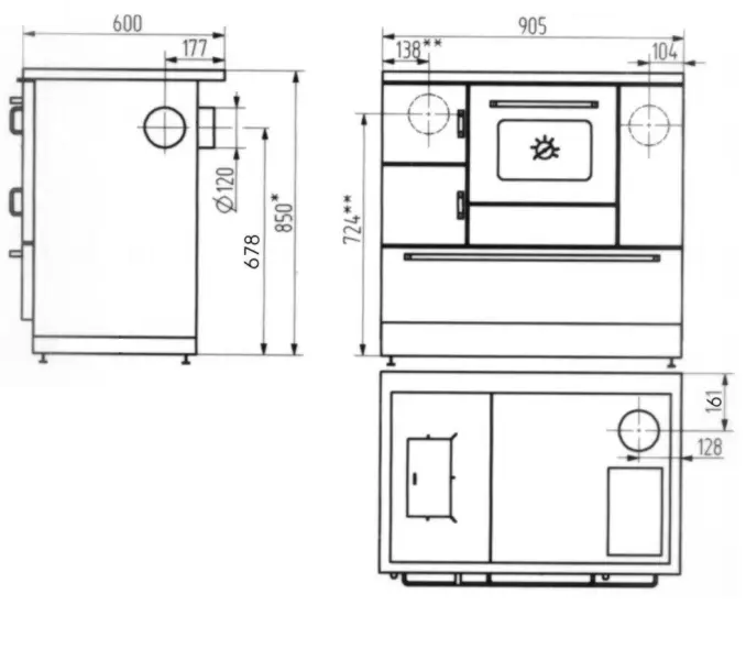 Als Zubehör ist ein Abstandsverbinder lieferbar. Der Rauchgasanschluss ist wahlweise rechts oder links möglich.
