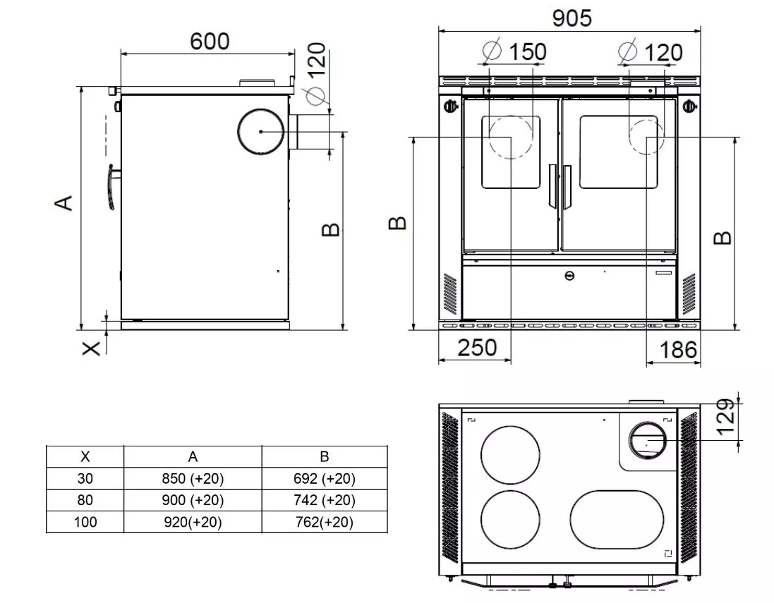 Als Zubehör ist ein Abstandsverbinder lieferbar. Der Rauchgasanschluss ist wahlweise rechts oder links möglich.
