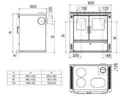 Ausstattung des Wamsler Holzherd W3-90 Edelstahl
