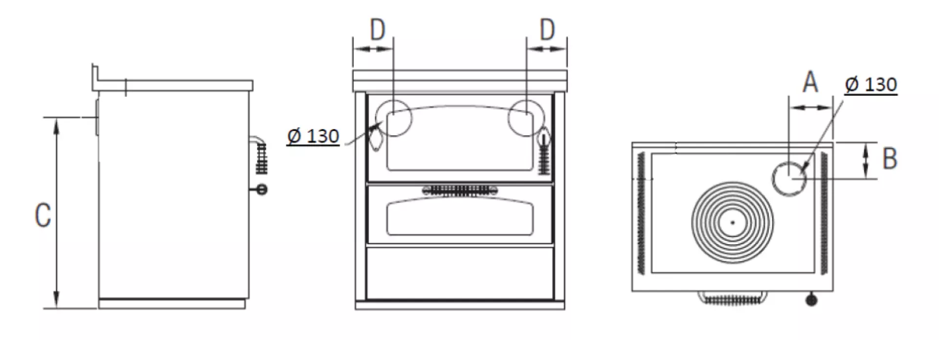Als Zubehör ist ein Abstandsverbinder lieferbar. Der Rauchgasanschluss ist wahlweise rechts oder links möglich.